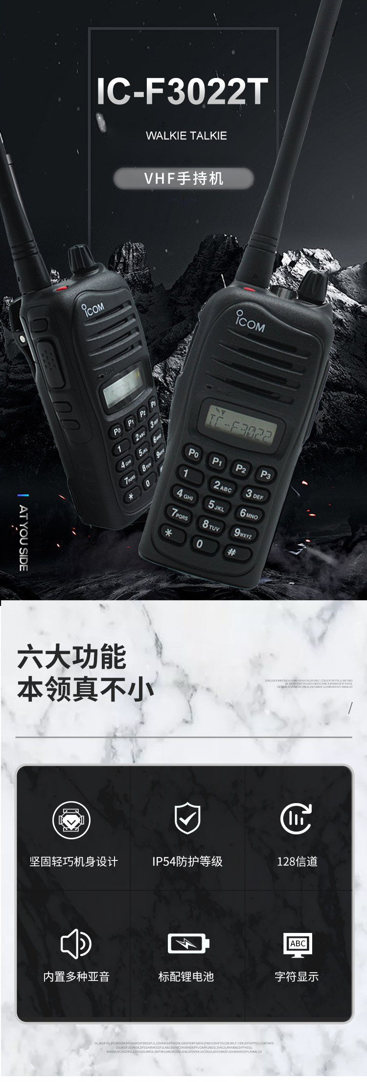 IC-F3022標配鋰電池,具有容量大,重量輕,便于攜帶的特點。
