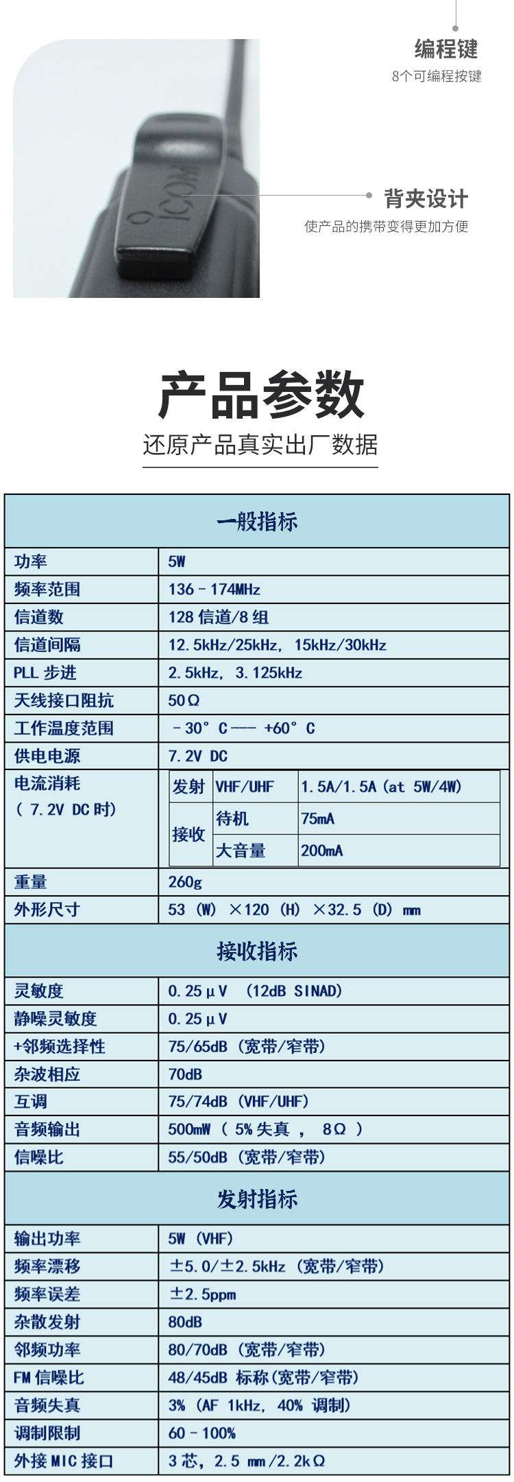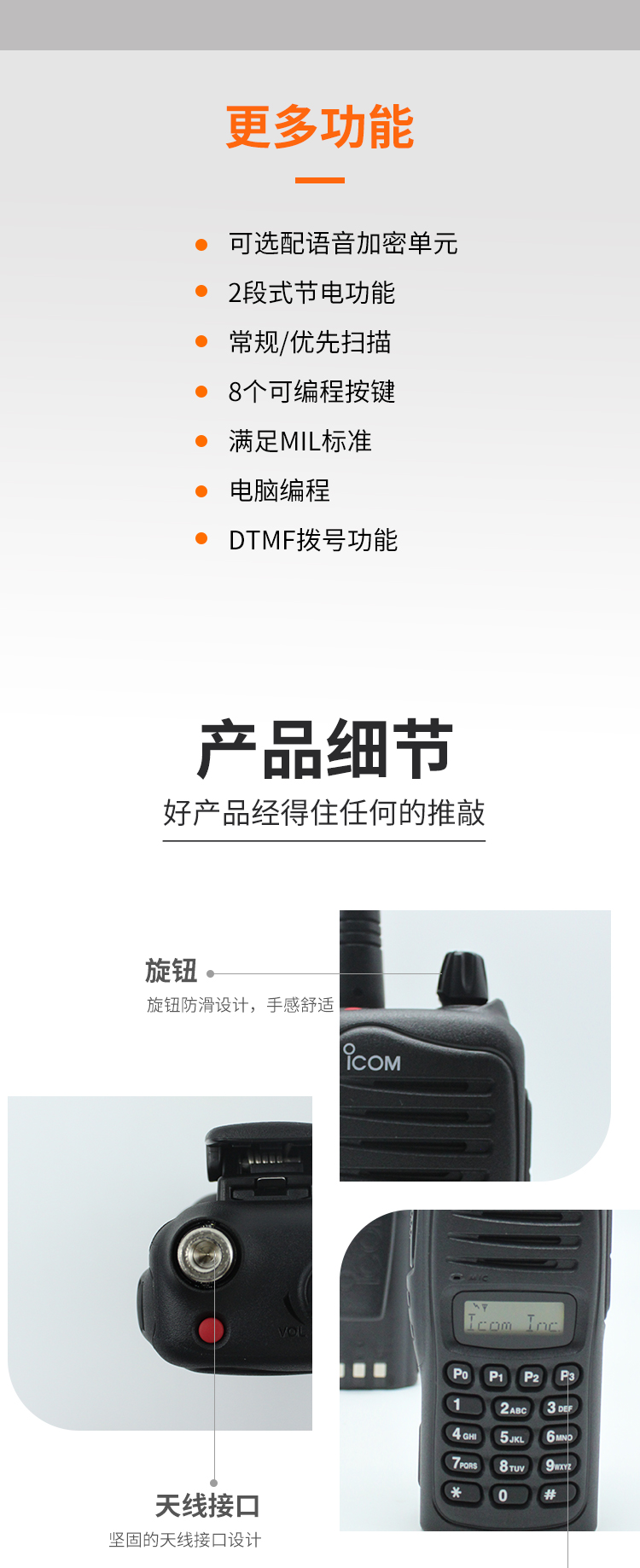 可選配語音加密單元,防止他人竊聽。內置啞音頻,消除無用信號的干擾。8個可編程按鍵可根據自己需要進行設置。